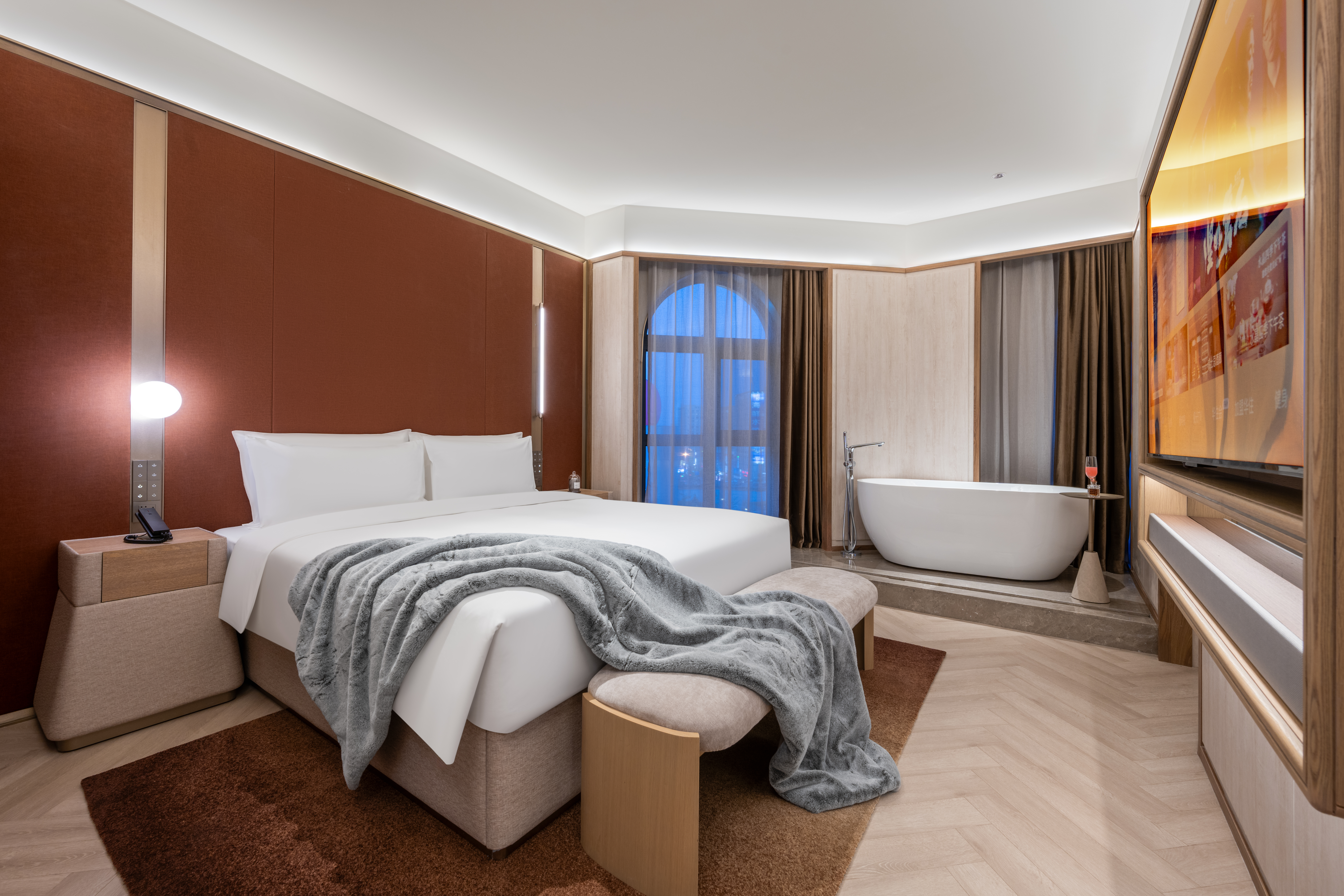 豪华套房(亲肤浴袍+电视投屏+小冰箱++智能马桶+侍寝香氛)